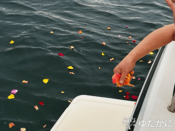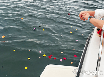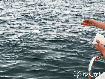 なお、こちらのページにゆたかに粉骨で実施したすべての散骨時の写真を載せているわけではありません。ご覧になりたい散骨日の写真がない場合は、こちらまでお問い合わせください。